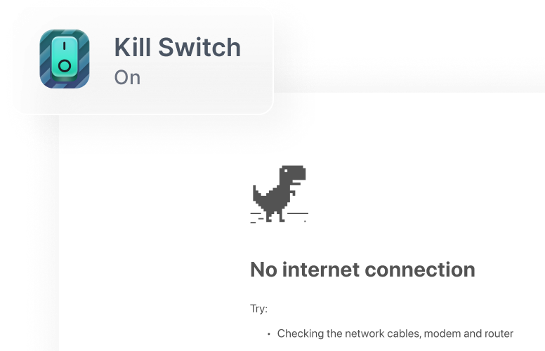 Our kill switch disables your internet connection if your VPN connection drops, keeping your IP address private.